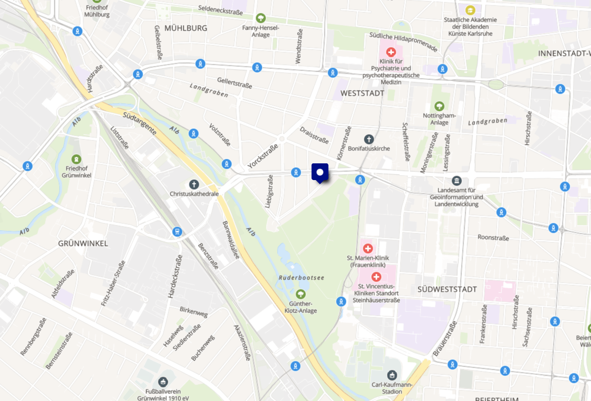 Das Parken von 9 bis 18 Uhr ist ebenfalls freigegeben entlang der Kriegsstraße stadteinwärts, dort befinden sich kurz vor der Einmündung Eisenlohrstraße weitere Parkplätze mit Parkscheibe. Die Schrägparker in der Mitte der Kriegsstraße sind ohne jede Beschränkung nutzbar.